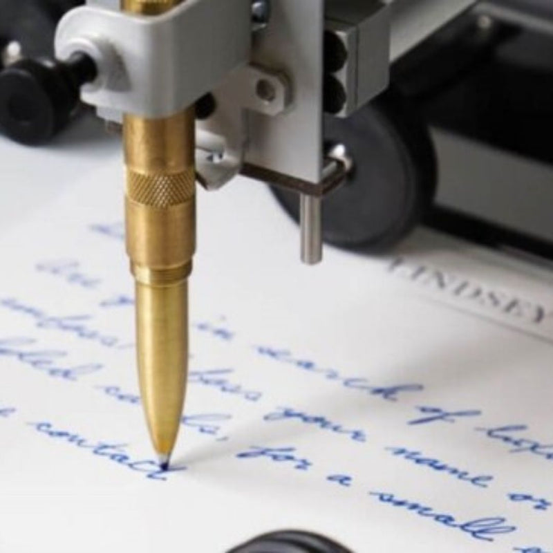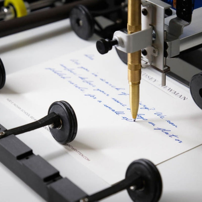 A custom fleet of writing robots engineered to simulate real handwriting at scale for product testing and validation.
