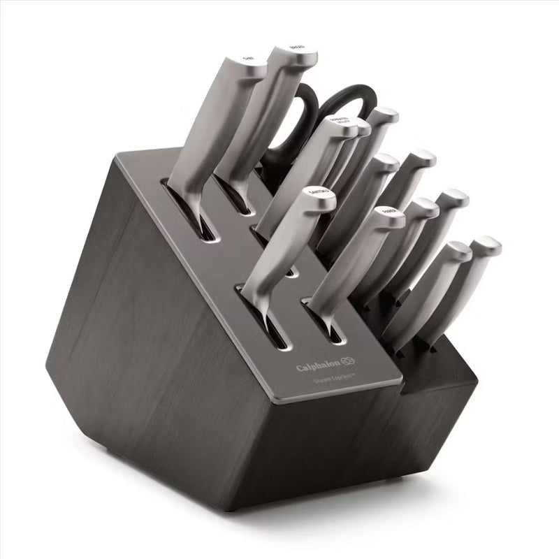 Calphalon knife systems designed for balance, edge retention and control. Where precision engineering meets everyday cooking confidence.